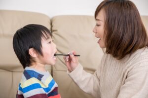 お口を開ける練習になり、 実際の診療時もスムーズに進みやすくなります。